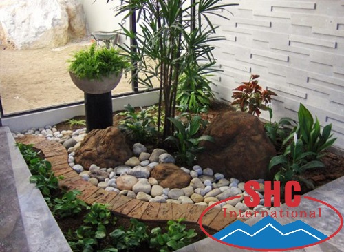 Bạn chỉ cần sử dụng sỏi đá, các loại cây đơn giản để làm đẹp cho khu vực rộng vài m2.