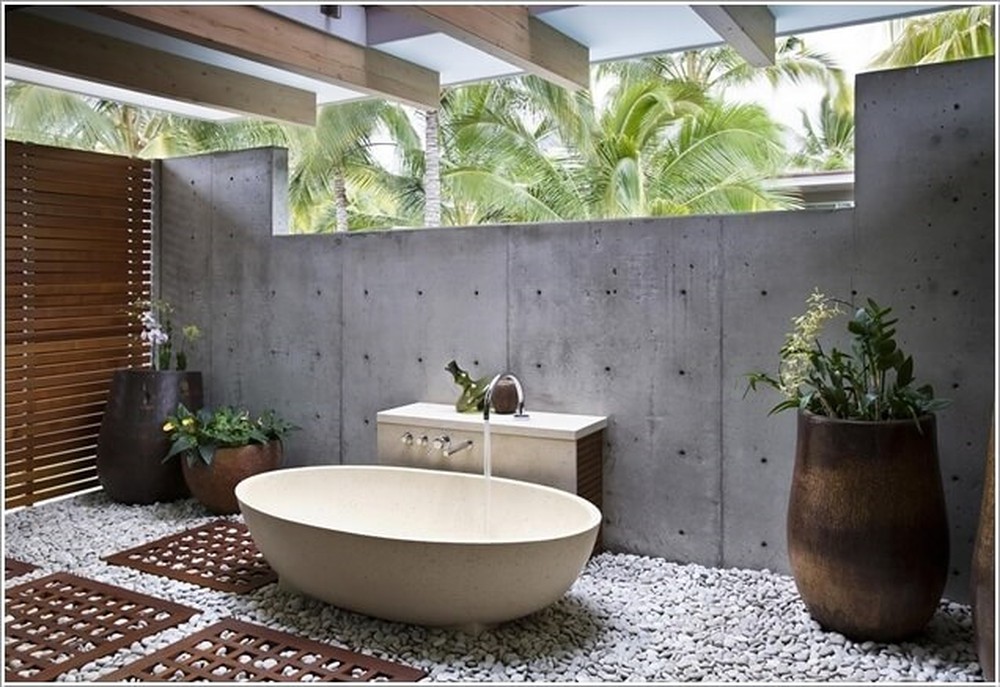 Với màu sắc tự nhiên và hình dạng tròn, đá và sỏi có thể dùng cho thiết kế ngoài trời, tạo phong cách và sự độc đáo. Đối với nội thất, bạn có thể thêm đá vào trang trí phòng tắm, để có không gian như spa.