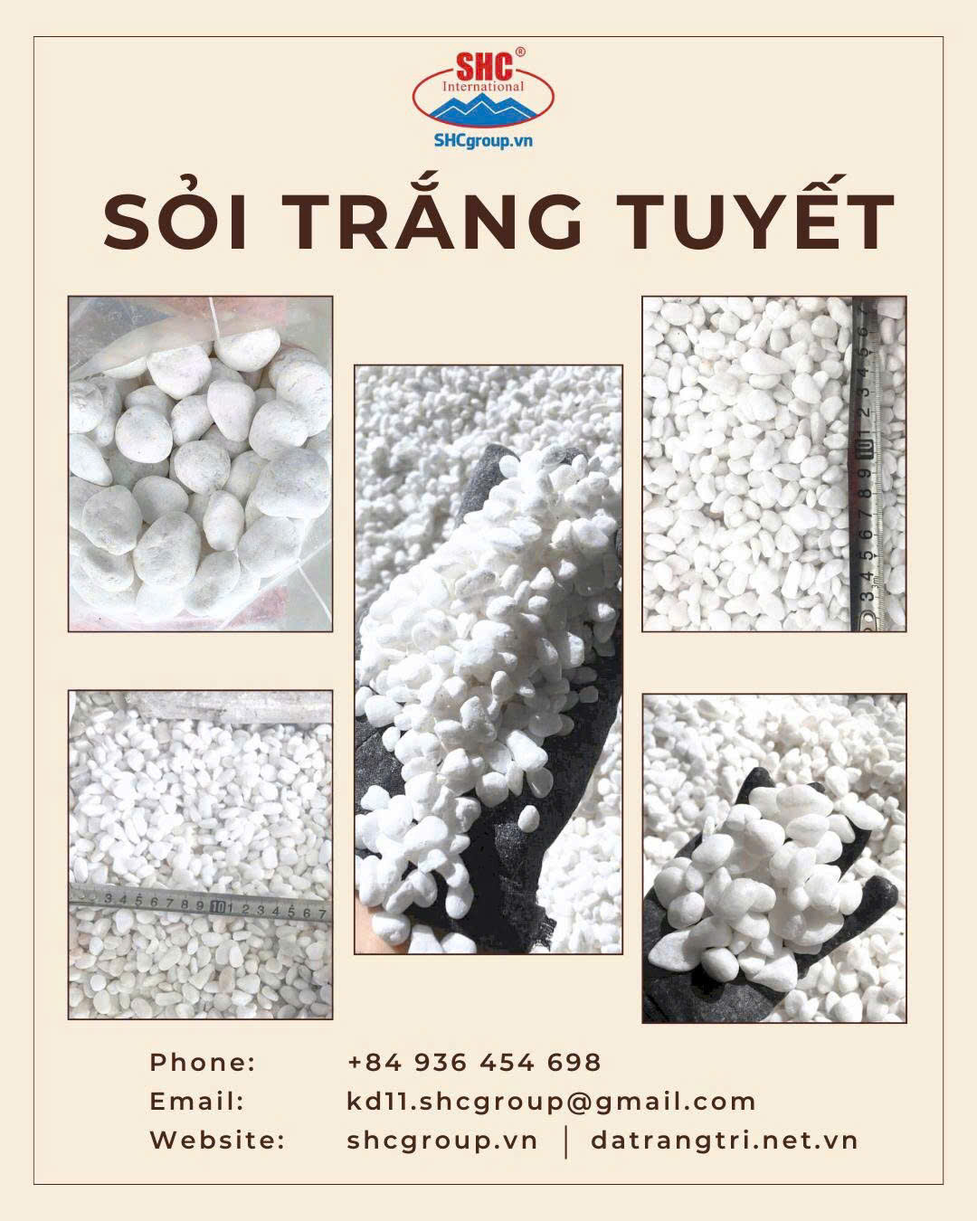 Sỏi trắng tự nhiên: Mang đến sự tinh khôi, sáng sủa, thường dùng lát lối đi, rải quanh gốc cây.