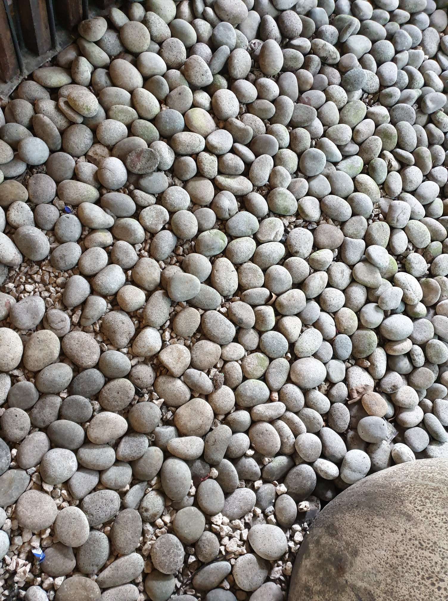 - Đá sỏi tự nhiên hay còn gọi là đá cuội, đá cuội rất quen thuộc với con người nó gắn bó với chúng ta từ lúc còn nhỏ, lúc có tuổi thơ. Đá sỏi tự nhiên là vật nằm im bất động vô tri, vô giác, chúng thường hội tụ xôn xao bên bờ suối, cũng có thể bắt gặp nó lẻ loi trống vắng cạnh bờ sông hoặc đôi khi chúng nằm ngổn ngang phơi mình trên biển cát mênh mông. Thoạt nhìn chúng rất có vẻ cô đơn, bề ngoài thô kệch nhưng nổi bật bên trong chúng là những khoảng lặng của không gian vô tận
