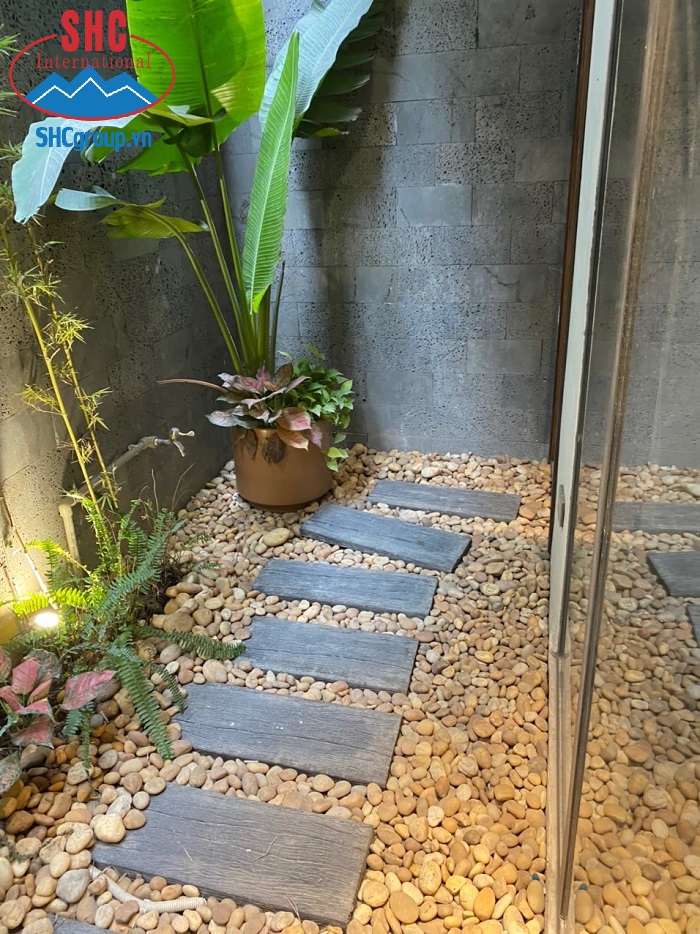 Ngoài ra, sỏi cũng được sử dụng để lót lối đi đây là cách vận dụng rất sáng tạo để làm nổi bật cây xanh và che đi phần đất xấu.