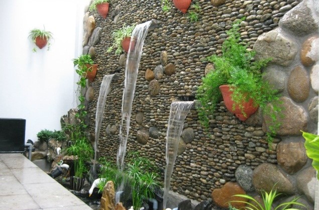 Hoặc bạn có thể sử dụng những viên sỏi cuội vàng cùng với những viên đá to gắn kết ghép chúng lại tạo thành một hồ nước nhân tạo trong không gian sân vườn của gia đình. Đây là giải pháp giúp bạn giải tỏa căng thẳng sau những giờ làm việc dài mệt mỏi.